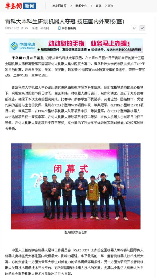 11月22日-25日,第十五届全国机器人锦标赛暨第四届国际仿人机器人奥林匹克大赛在贵阳举行,来自中国、美国、俄罗斯、韩国等8个国家的80余所高校携机器人参与本届比赛的角逐。
