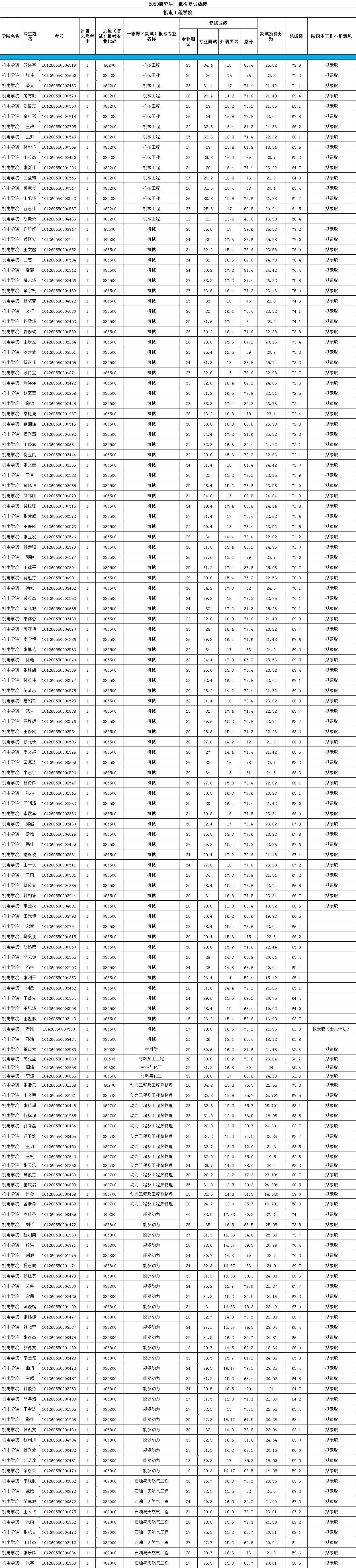 2020年开云kaiyun官方网站研究生一批次复试成绩