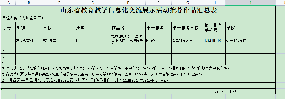 根据学校《关于征集2023年全省教育教学信息化交流展示活动作品的通知》的要求,学院组织全院教师报名,共征集作品1件,经审核,符合要求。学院拟推荐该件作品至学校,现对申报作品进行公示。