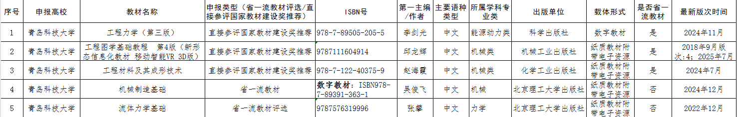根据学校《关于开展第三批山东省高等教育一流教材和第二届全国教材建设奖评选推荐工作的通知》,经个人申报,学院初审,同意以下教材申报并推荐至学校,参加进一步遴选(排名不分先后),特此公示。。公示期三天(2025年7月3日-7月5日),如有异议,请在公示期内向开云kaiyun官方网站教学办反映