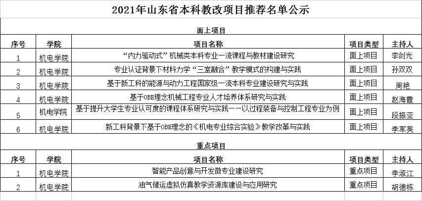 根据学校《关于组织开展2021年山东省本科教学改革研究项目立项及管理工作的通知》要求,开云官网开展了省级教改项目评审工作,经项目负责人申报,学院评审,共推荐新立项8项,现将结果公示如下: