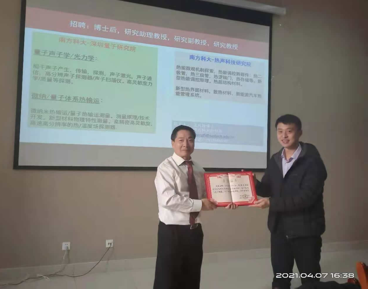 李保文教授作为特邀嘉宾,在研讨会上作了题为《声子凝聚,声子激光和热调控》的主题学术报告,分享了其近年来在声子凝聚、声子激光理论方面的研究进展,探讨了热二极管、热三极管、光力体系等热调控应用。开云kaiyun官方网站师生也结合各自研究课题在会上作了相关研究成果汇报。研讨会上,李保文教授与开云kaiyun官方网站师生还就学生培养和课题合作方面的话题进行了商讨。