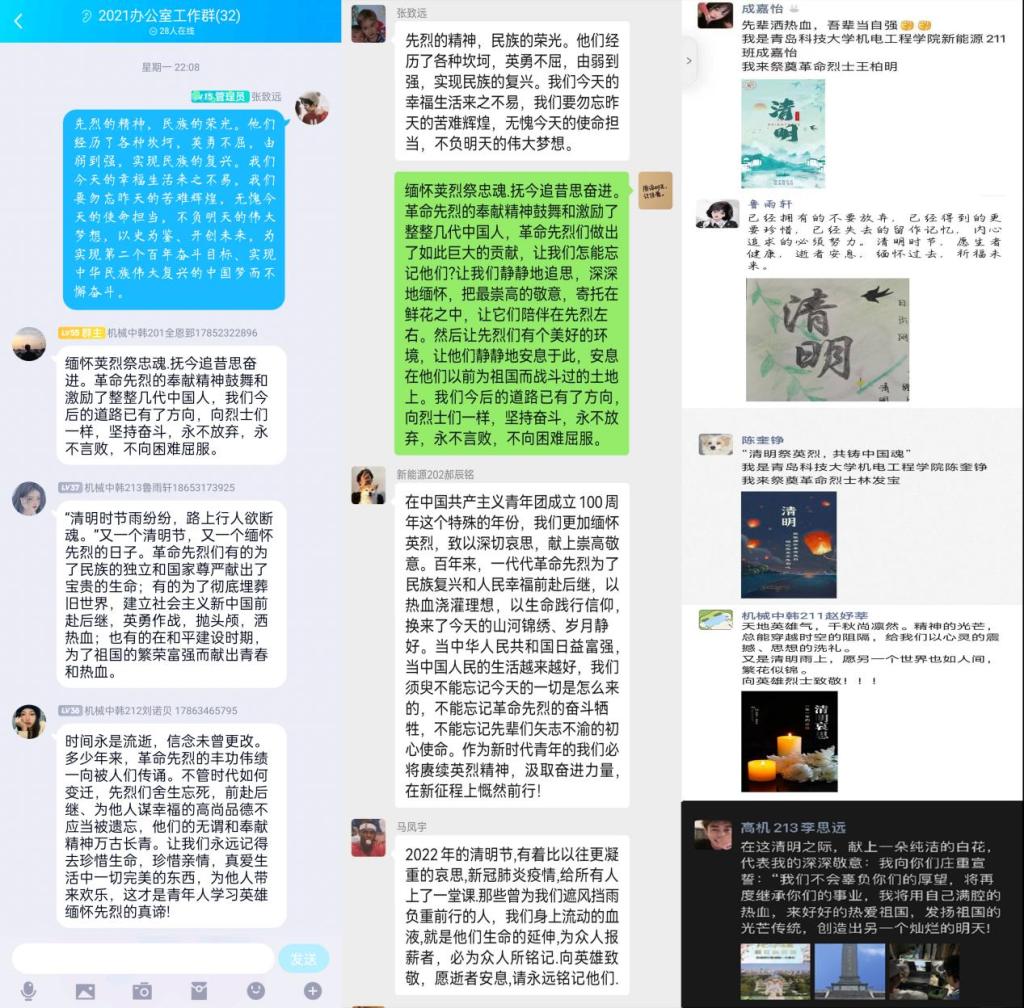 缅怀先烈志,共筑中国魂——开展“铭记历史,追思先烈”主题感悟分享会。同学们纷纷在班级QQ群、微信群中表达对于先烈的纪念与致敬。开云kaiyun官方网站学生会赵帅迪说,“先烈的精神,民族的荣光。他们经历了各种坎坷,英勇不屈,由弱到强,实现民族的复兴。我们今天的幸福生活来之不易,我们要勿忘昨天的苦难辉煌,无愧今天的使命担当,不负明天的伟大梦想”,诉说着对于英雄先烈的钦佩与敬仰。传承先烈风骨、铭记先烈遗志、弘扬英烈精神,争做时代新人。