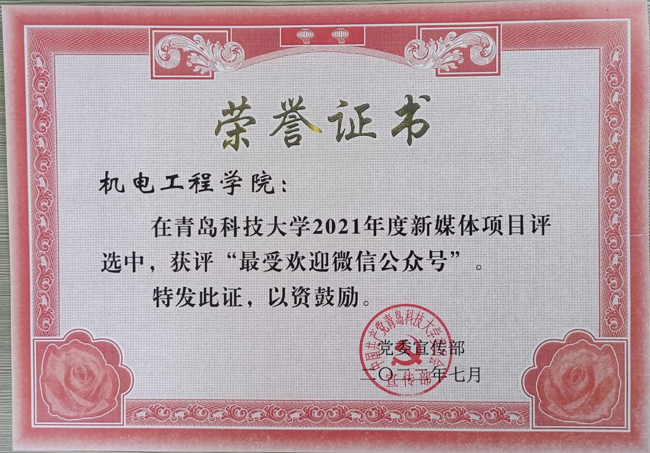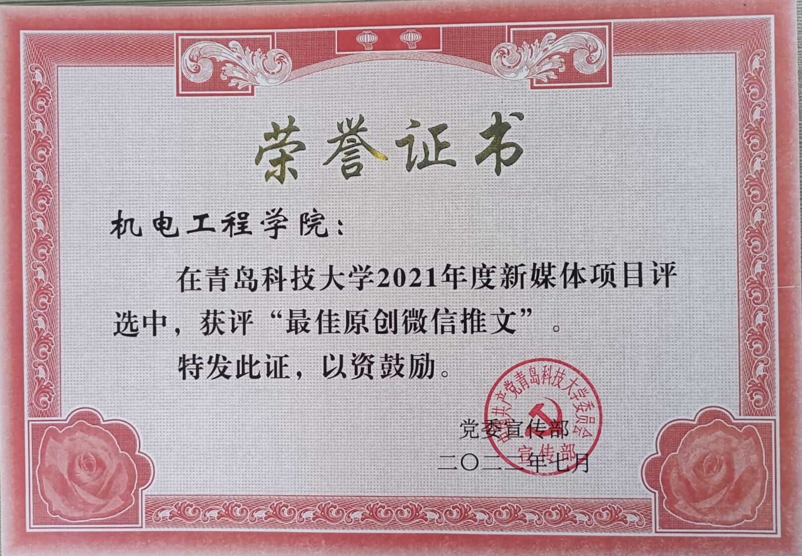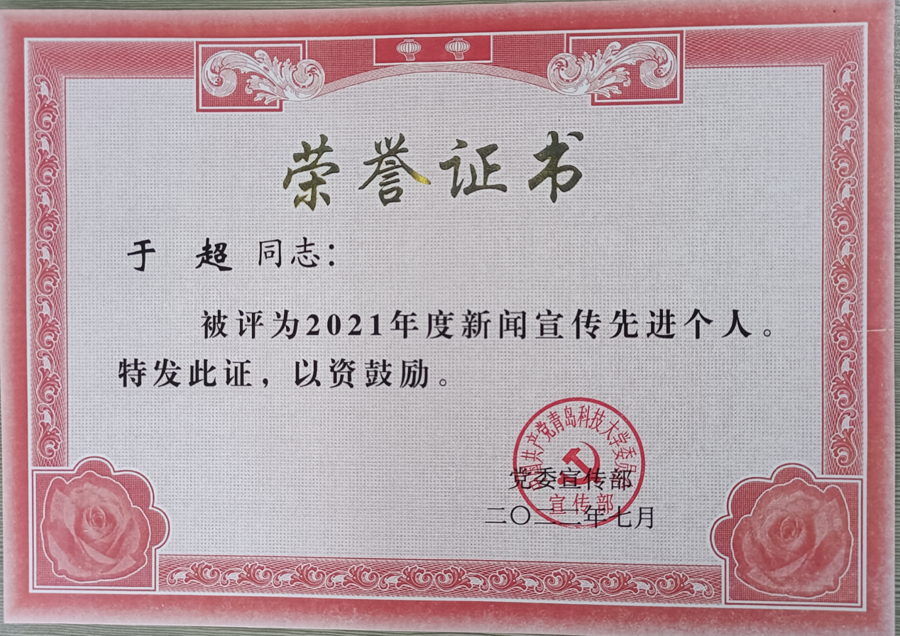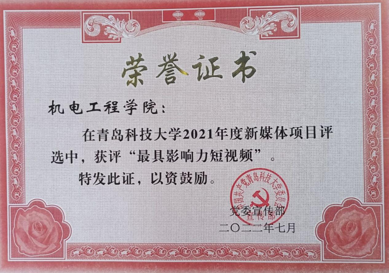 此外,学院在2021年度新媒体项目表彰中荣获多项荣誉。学院荣获2021年度新闻宣传先进单位,微信公众号“青岛科技大学开云kaiyun官方网站”荣获2021年度最具影响力微信公众平台,新媒体项目评选中获评“最具影响力短视频”、“最佳原创微信推文”和“最受欢迎微信公众号”,于超获2021年度新闻宣传先进个人。