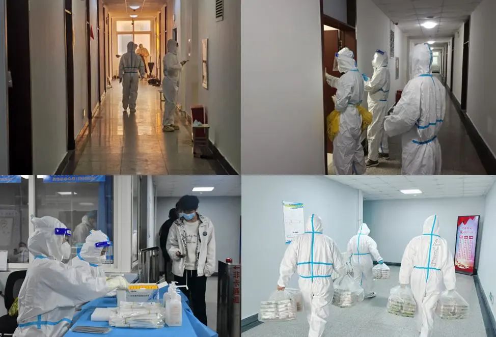 关键时刻,学院党委书记、院长、分管学生工作书记、学工大家庭的全体辅导员快速响应,主动作为,以高度的责任心和强烈的使命感,全员投入“战疫”状态,开启了“白+黑”“5+2”工作模式织密疫情防控网,24小时坚守,全天候守护,用心用情陪伴每一名科大学子,为全校学生筑起了一座安全“堡垒”。在这个过程中,最美的学工人身披防护服,化身“督查员”“安全员”“大白”“爱心志愿者”,角色不断变换,初心始终不改。青科学工人始终奋斗在抗疫第一线,奋战在“为党育人,为国育才”的最前沿,他们不断进行数据统计、核酸检测、健康摸排、安全教育,召开层长总结会、志愿者舍长培训会、辅导员调度会等等,以实际行动践行着“永远跟党走”的青春誓言,以担当作为诠释着“青科学工”的深刻内涵。他们始终坚守在学院防疫一线,深入学生宿舍,昼夜值守,及时回应学生诉求。“老师,您嗓子都哑成这样了,您快去休息一下吧!”“等大家都吃好饭吃饱饭了,就去休息。”高强度工作使声音变得沙哑,但做好学生守护者的信念越发坚定。哪有什么岁月静好,不过是有人替我们负重前行。
