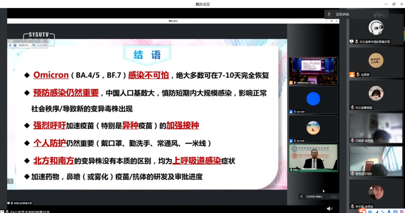 12月15日15时,开云kaiyun官方网站学生会线上组织观看钟南山院士主讲的全国高校抗疫大讲堂“新冠(Omicron)疫情动态及应对”的讲座。