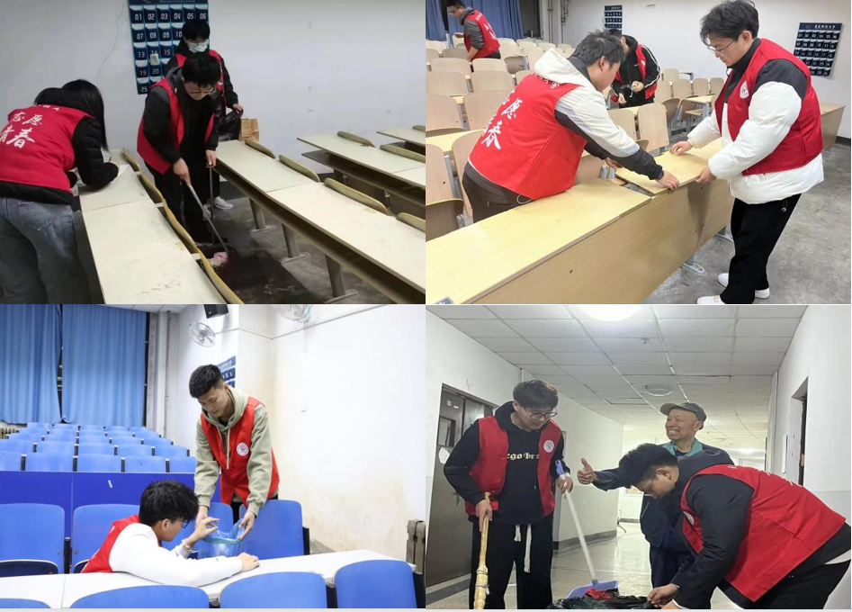 开云kaiyun官方网站学生会积极响应学校“爱校荣校”校园清洁及春季“爱国卫生”活动,组织学院学生参加学雷锋行动,参与教室、教学楼等公共区卫生清理以及教学楼损坏桌椅检修等志愿服务活动。同学们积极行动,分工合作,默契配合,认真清扫校园每个角落,以实际行动共建美丽校园,营造和谐干净的学习环境,切身践行雷锋精神,为创建美丽青科大贡献力量。
