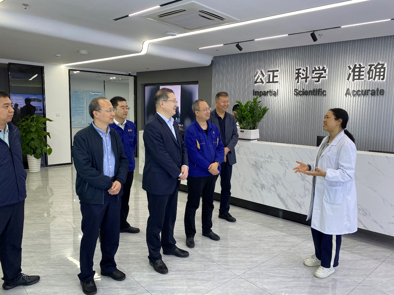 调研期间,任允晓一行参观了公司机器人检测实验室、汽车零部件检测实验室、橡塑密封检验检测实验室。