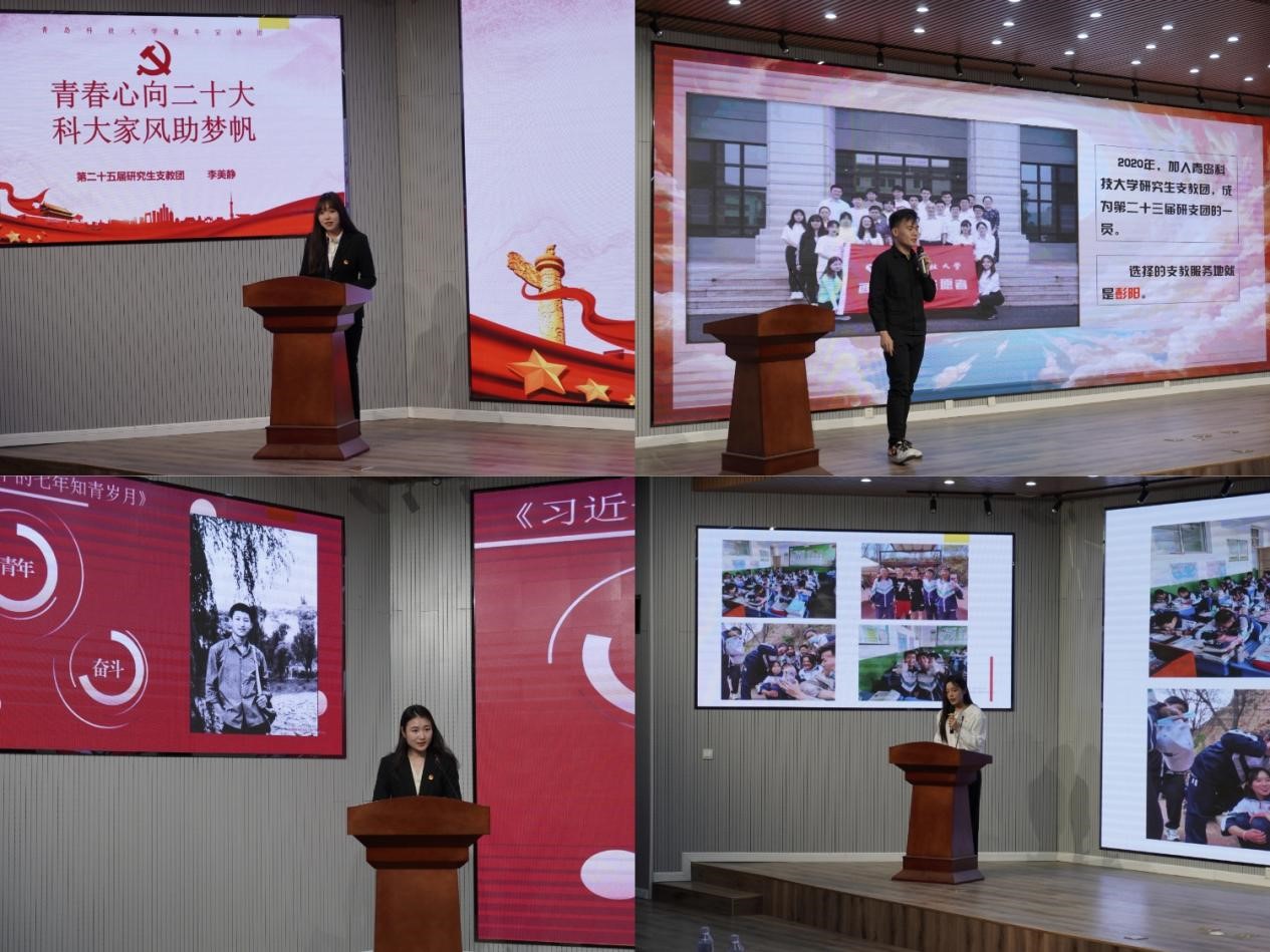 本次宣讲聚焦学生骨干成长发展,邀请了学校青年宣讲团成员,结合党的二十大精神讲述青春故事。宣讲团成员李美静、马庆万、孙笑琰、姜秋雨为学生骨干分享成长经验,用“青言青语”激励机电学子要坚定信心、奋勇前进,争当伟大理想的追梦人,争做伟大事业的生力军,为学校加快建设“特色鲜明、走在前列”的高水平大学贡献青春智慧与力量。