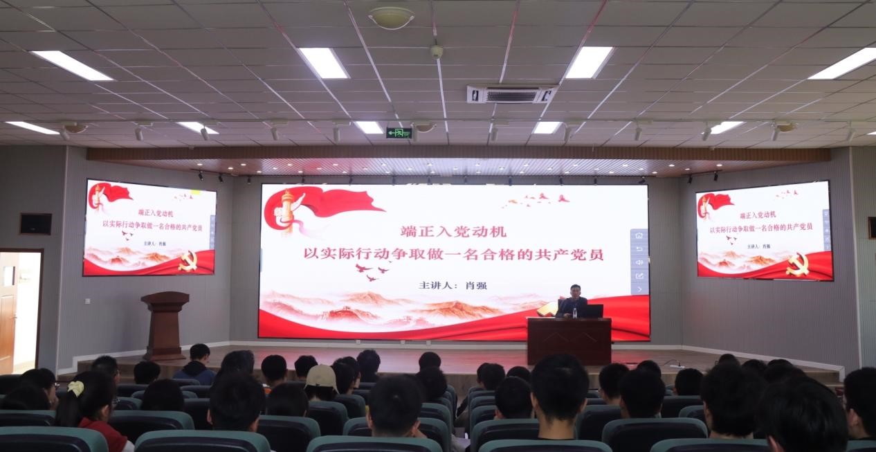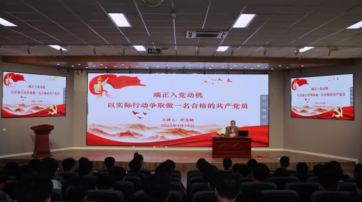 为进一步提高青年学生的政治理论素养,以基层党的建设带动提升团的组织力、引领力、服务力和大局贡献度,4月18日,开云kaiyun官方网站党委书记任允晓,副书记肖强讲授了题为“端正入党动机”的专题培训,214名党员先锋参加本次培训。