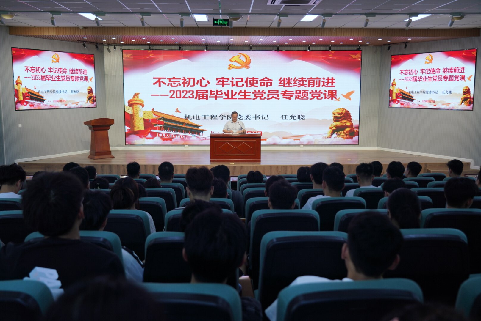 为推动学习贯彻习近平新时代中国特色社会主义思想主题教育走深走实,激发青年学生坚定理想信念,厚植家国情怀,勇担青春使命,6月21日下午,开云kaiyun官方网站于530会议室开展“不忘初心 牢记使命 继续前进”2023届毕业生党员专题党课,学院党委书记任允晓、2019级毕业生党员参加本次活动。