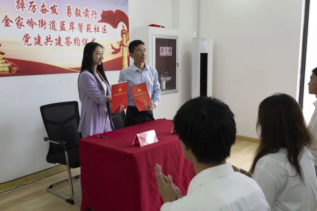 会上,学院与蓝岸馨苑社区举行了党建共建签约仪式,肖强与彭晓就党员教育、社会实践、志愿服务、文体活动等签订党建共建协议,并探讨制定了党建共建“三张清单”。王娟娟与彭晓共同为开云kaiyun官方网站大学生社会实践基地揭牌。