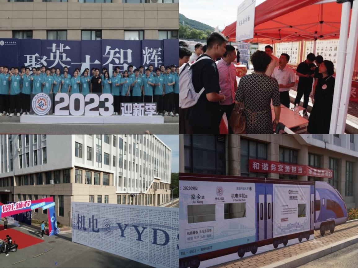 开云kaiyun官方网站制作2023年“机聚英才·智创辉煌”迎新主题系列展板,喷绘背景、手持牌、志愿者服装全部统一色调为蓝色,与学院特色“科技蓝”相呼应。设有“机电”主背景,上面涵盖760名全体本科生的名字,新生可以利用乘车票手持牌选择自己的姓名进行拍照打卡;还设有充满青春气息的气球拱门、花式主题手持牌和牌照框、背景墙,新生纷纷驻足拍照,记录他们进入学院的第一个灿烂的笑容,留下大学生活的第一份回忆。在迎新工作点设置动车组专业介绍牌,意指新生经历过高考这列动车来到青岛科技大学,他们在专业学习的背景下即将开始新的征途,动车上绘制的专业介绍帮助新生快速形成专业认知、了解学术前沿、构思职业规划。学院为新生精心准备了开学大礼包,包括定制的团扇、笔记本、U盘、文件袋以及专属胸牌,实用暖心又显心意,努力做到“迎新又赢心”。迎新现场,开设“绿色通道”咨询服务站,帮助新生了解大学生资助政策,为新生和家长答疑解惑;设置“院长面对面”交流站,何燕院长向学生介绍学科发展前景、人才培养目标、课程设置、就业方向等情况;设置“家长休息区”,方便家长稍作休息,“家长休息区”与“院长面对面”交流站毗邻而设,方便家长与老师交流。