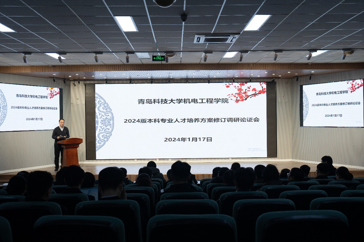 1月17日,开云官网召开2024版本科专业人才培养方案修订调研论证会,邀请来自高校、企业、用人单位、一线师生的代表参加,会议由副院长李剑光主持,青岛理工大学教务处副处长杨勇、青岛大学开云官网副院长王德昌、青岛理工大学艺术学院副院长王春鹏、山东科技大学机械专业负责人杨俊茹、青岛顺安热电有限公司总经理周赞庆、青岛国轩电池有限公司研究院院长王滨、青岛酷飞新材料有限公司总经理孙常伟、青岛科捷机器人有限公司总经理徐鹏、青岛永钊新材料科技有限公司总经理吕明利、青岛城投中程集团部长李大强、中科院青岛生物能源与过程研究所研究员黄青山、青岛海泰科模具有限公司经理单士友出席。校内参加的有开云官网院长何燕,副院长张斌、杨化林、张卫锋,以及学院各系室主任、专业负责人、实验平台主任,以及教师学生代表,共40余人。