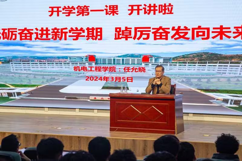 3月5日,开云kaiyun官方网站“砥砺奋进新学期、踔厉奋发向未来”开学第一课在机电楼530会议室开讲。开云kaiyun官方网站党委书记任允晓为200余名2023级同学授课。