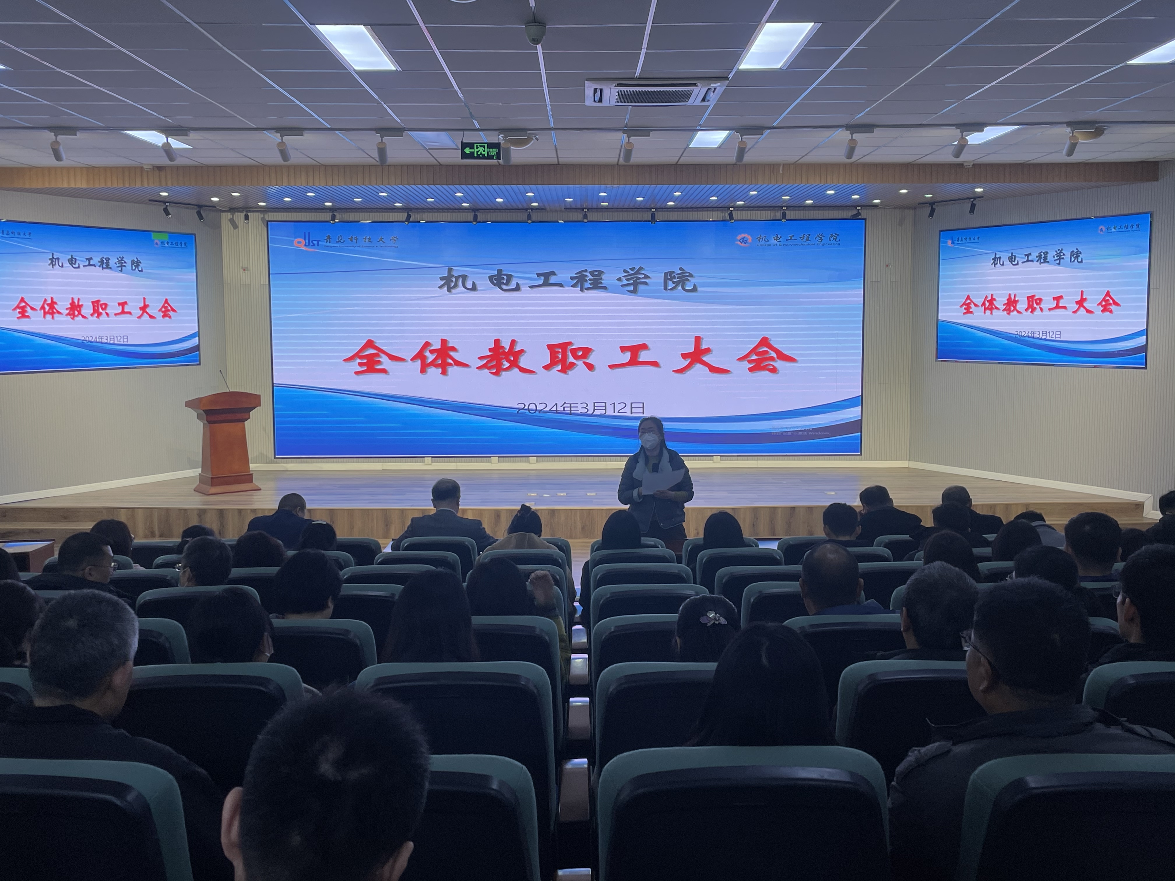 3月12日,开云kaiyun官方网站召开学院教职工大会,传达学校2024年工作会议精神,学习学校2024年工作要点,部署学院2024年重点工作。
