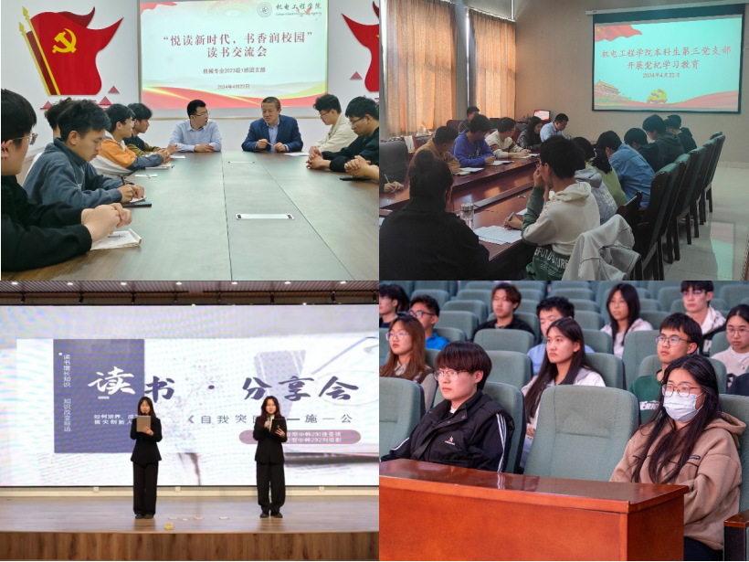 扎实推进“分享式阅读”。学院发挥党员、学生骨干先锋模范作用,通过“书记院长荐书”“阅读故事分享会”等形式推进“书香科大”全民阅读工程走深走实。学院领导班子及思想政治工作者共同诵读《青科大赋》,号召广大师生用实际行动读懂青岛科技大学这本“大书”。学院党委书记向师生党员分享党纪学习教育心得,原汁原味学习《中国共产党纪律处分条例》。机械231团支部开展“师生共读一本书”主题团日,师生分别分享了《青春之歌》《毛泽东诗词》《科学的历程》《共产党宣言》等经典书目。