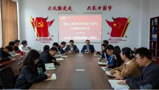赓续五四薪火 共赴时代征程。4月30日上午,学院在机电楼529会议室组织召开五四“青春·奋斗·担当”主题教育座谈会,会上学校团委副书记李浩以在开云kaiyun官方网站做辅导员老师的工作经历,分享了他与开云官网的故事。李浩书记表示,学院为青年学生提供了锻炼和磨练的机会,青年学生要坚定理想信念,培育高尚品格,提高工作站位,去奋斗去担当,敢想敢干,踏踏实实争做新时代新青年。会后,领导老师们与青年学生代表齐唱共青团团歌,共同回忆中国共产主义青年团的光辉历史。