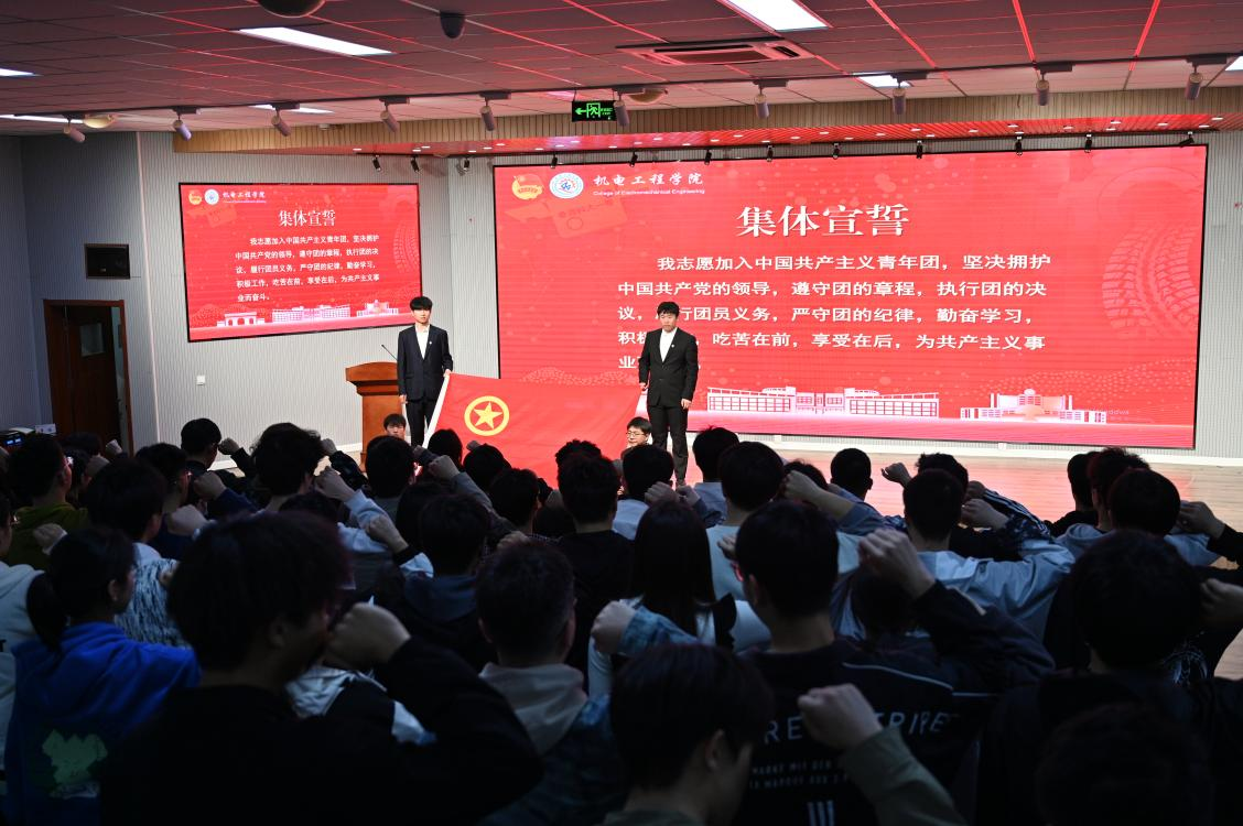 4月28日,开云kaiyun官方网站团委在机电530会议室开展“青春奋力向党,挺膺担当筑未来”2023年新发展团员入团仪式,学院党委副书记兼副院长杨小明,学院团委教师代表出席,团支部书记代表、优秀团员代表以及2023年新发展团员参加本次仪式。