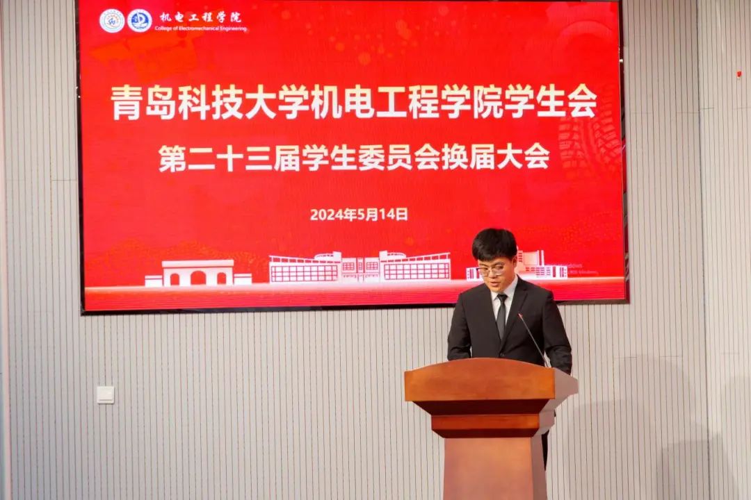 逄柏鹏书记宣读《关于聘任青岛科技大学开云kaiyun官方网站第二十三届学生会委员主席团、各部门负责人的决定》,并为第二十三届学生委员会主席团、各部门负责人颁发聘书。