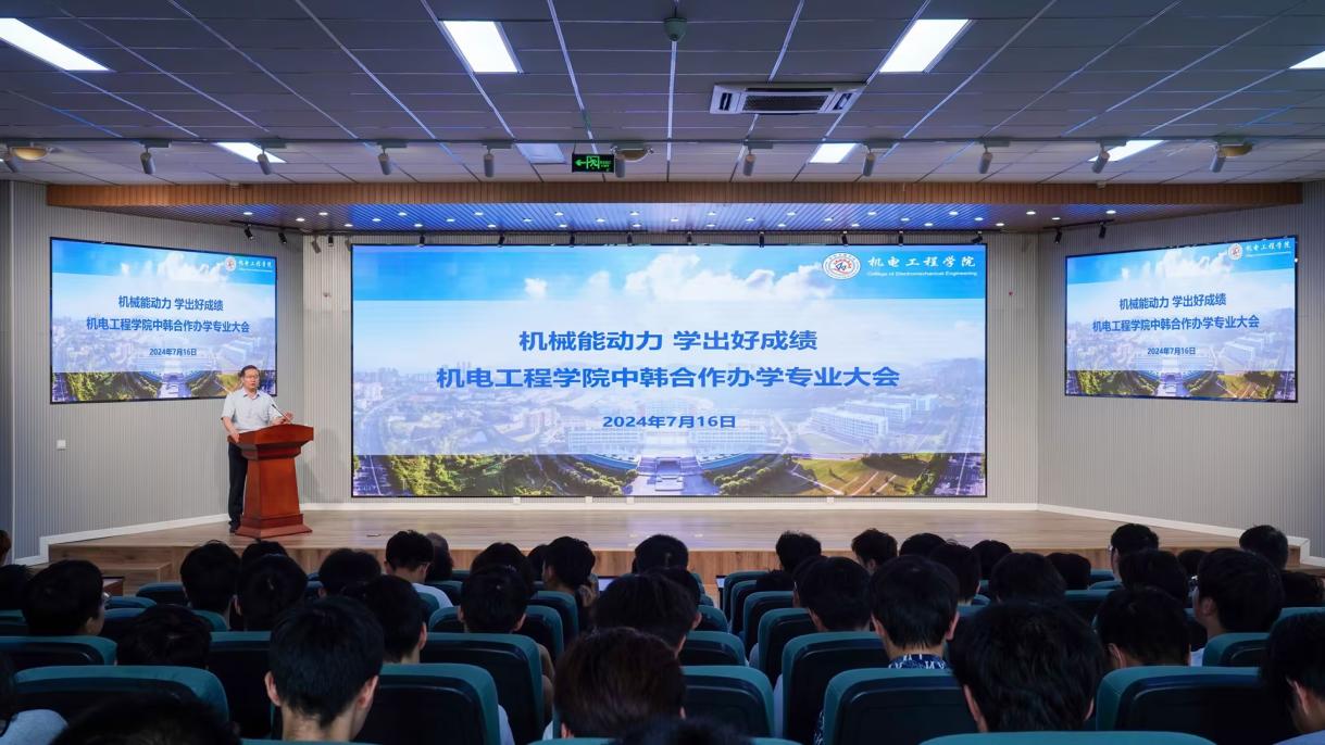 为加强中韩合作办学专业学风建设,推进学院中韩合作办学高质量发展,7月16日下午,开云kaiyun官方网站中韩合作办学专业大会在机电楼530召开,学院党委书记任允晓、副院长杨化林、合作办学办公室主任付平出席活动,23级中韩专业课教师、班主任、辅导员、全体学生200余人参加活动。