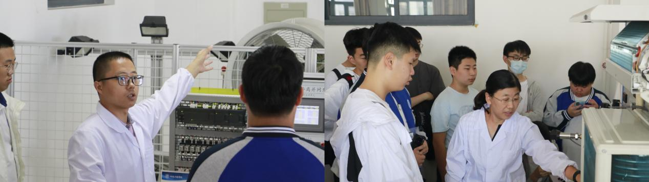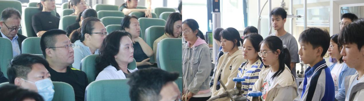 学院相关专业老师与研学同学开展深入交流,介绍学院特色专业,引领同学们深入热工基础实验室、机械实验室、新能源实验室参观各种机械设备、化学能源材料等,用通俗易懂的语言为他们讲解用法用途以及蕴含其中的机械原理。