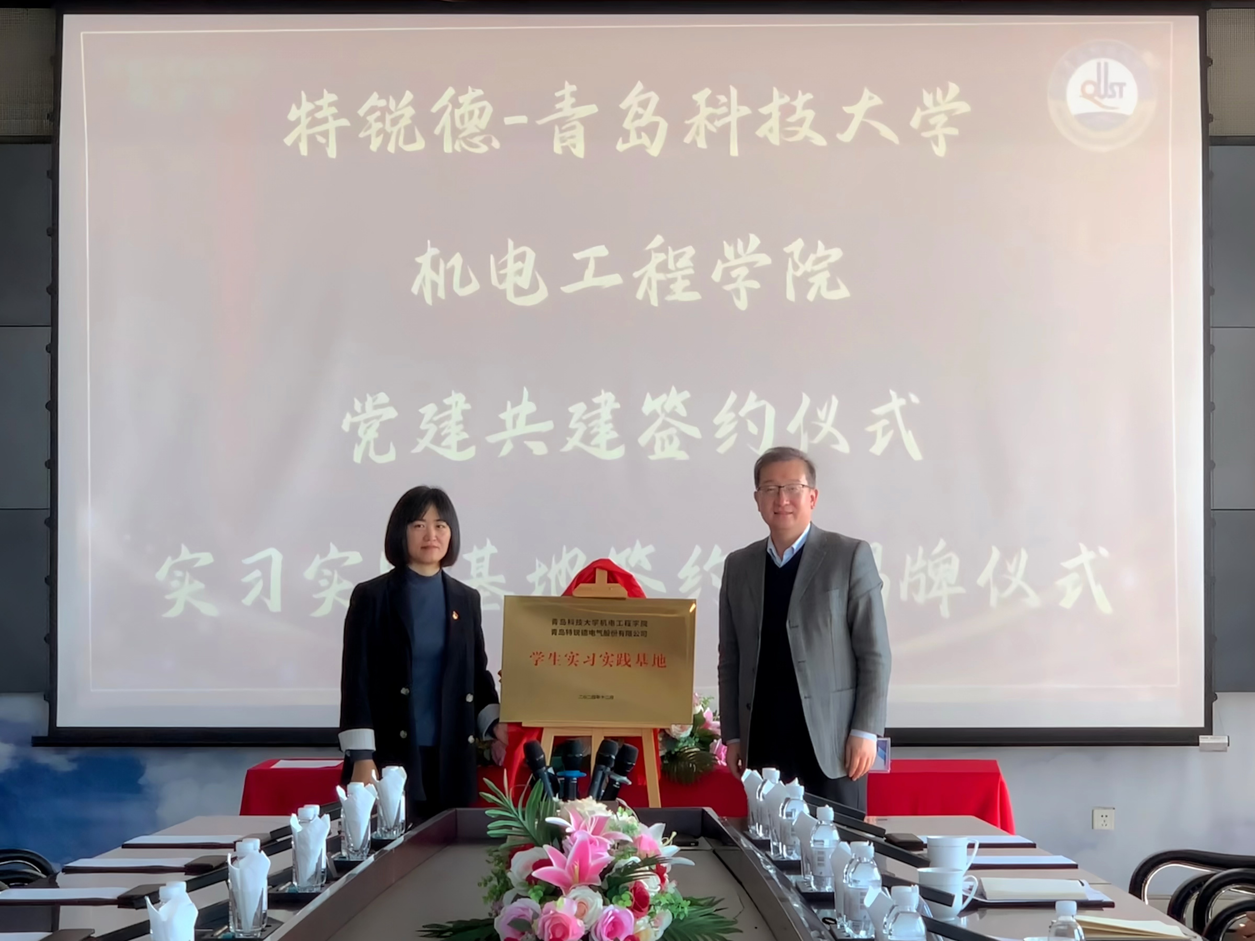 任允晓介绍了学院的发展现状、科研成果、人才培养机制以及校企合作的具体情况,希望未来与企业在科研合作、人才培养、学生就业实习和社会实践等方面展开更多的深度合作,邀请特锐德能够更深入植入到学院的人才培养和科学研究工作中。双方就促进学生的全面成长、实现高质量充分就业等展开深入的交流。会上,任允晓与韩增雪共同签署了校企党建共建协议和学生实习实践基地协议,并为学生实习实践基地揭牌。
