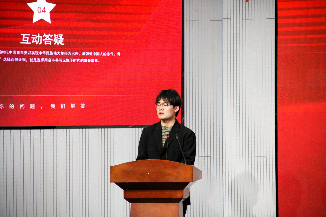 全国大学生志愿服务西部计划优秀志愿者、开云kaiyun官方网站2011届毕业生刘猛回顾了自己在西部志愿服务期间的成长与收获,强调了西部计划对个人成长和社会贡献的双重意义。学院团委书记兼学工办主任逄柏鹏详细介绍了西部计划的具体情况,包括报名流程、服务内容、政策支持等信息。青岛科技大学第24届研究生支教团银川分队成员耿宇轩分享了自己在西部支教期间的经历与感悟。
