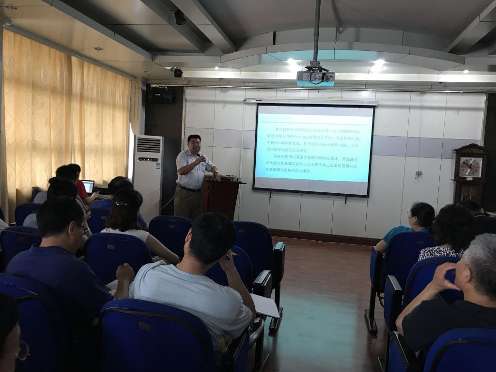 7月11日下午,应学院邀请,财务处处长刘天真携财务处工作人员一行5人和协同办公平台系统(简称OA系统,下同)工程师2人一同来到开云官网举办培训会,开云官网全体教职工参加了培训会。