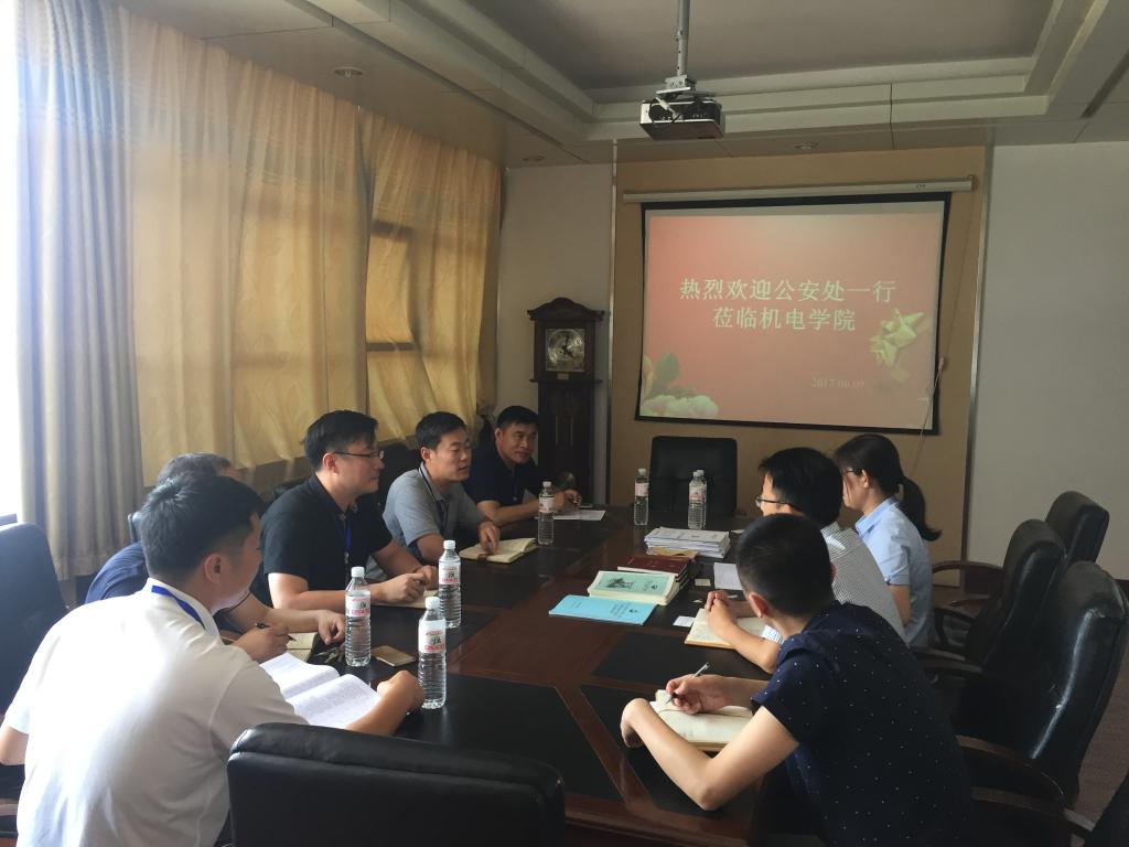 王伟首先对保卫处一行的到来表示热烈欢迎并简单介绍开云官网学生工作基本情况,重点围绕特殊生排查、学生安全教育、校园消防等方面工作进行介绍。严增兴介绍了保卫处相关科室工作职责作,并征求了学院对公安处的工作意见。会上,双方就“两学一做”学习教育、学校安保、实验室消防、学生安全教育等方面进行了深入交流。