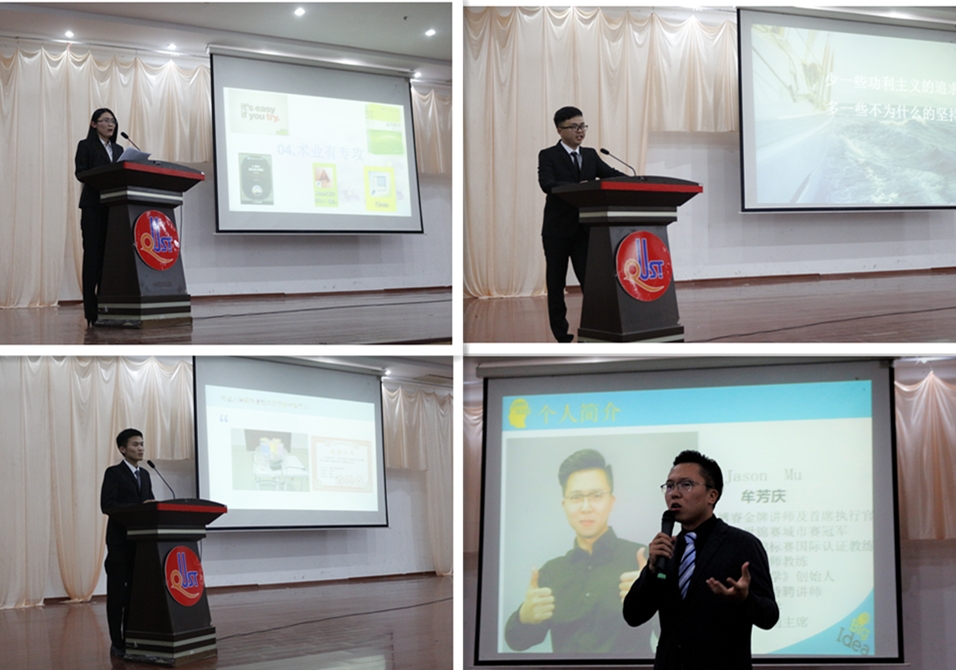 会后,四名优秀机电学子从学习教育、创新创业、志愿服务等角度分享了个人事迹和心得。