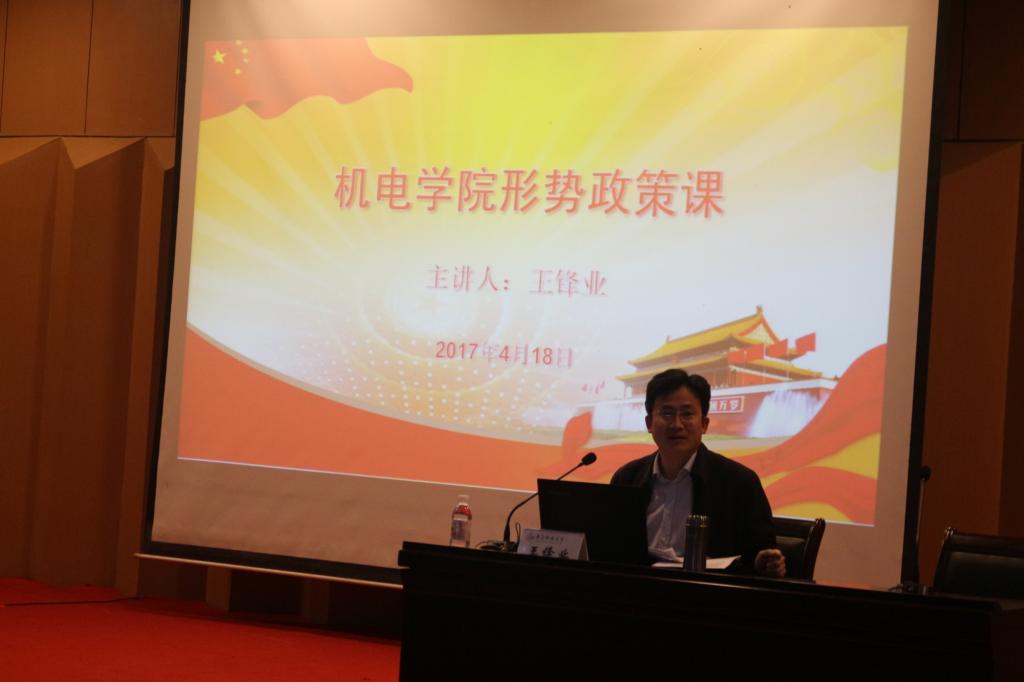 4月18日,开云官网《形势与政策》课在第三报告厅举行,校团委书记王锋业以《坚定不移走和平发展道路,为实现民族复兴中国梦营造良好国际环境》为主题,为开云官网300余名学生上了一堂精彩的《形势与政策》课。