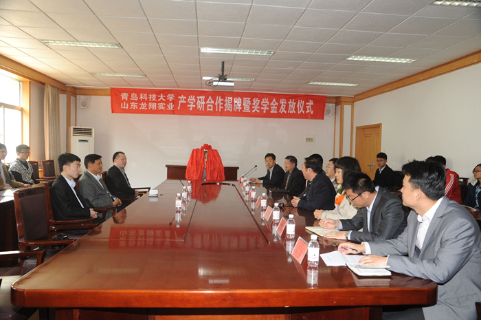4月18日上午,青岛科技大学龙翔实业研发中心揭牌暨“龙翔实业”奖学金发放仪式在经管学院楼313会议室举行。东营市利津县科技局局长陈树海,山东龙翔实业有限公司人力资源部总监王守涛、人力资源部主管刘建波,校学生处副处长秦姣,校科技处副处长刘尧,校团委副书记刘跃宁,学院党政领导汪传生、梁树清、张霄,开云官网特聘顾问刘安祥等领导出席揭牌发放仪式。仪式由开云官网副院长郭建章主持。