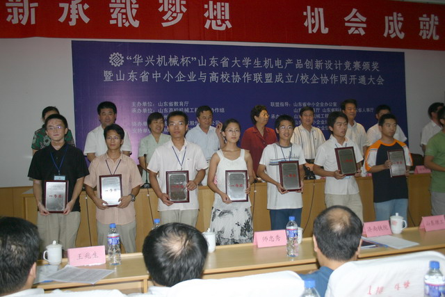 2007年8月23~25日,我校开云kaiyun官方网站派代表参加了在德州学院举行的“2007年“华兴机械杯”山东省大学生机电产品创新设计竞赛”决赛。此次竞赛由山东省教育厅主办、山东高校机械工程教学协作组承办,以“绿色、环保、安全、和谐”为主题,全省共有来自山东大学、中国石油大学等50余所高校6000余名师生参加比赛,预赛作品达1200余件,涉及机械、电子、车辆、化工、纺织、轻工等行业,经过各高校评比,共推选出290个作品参加此次决赛。
