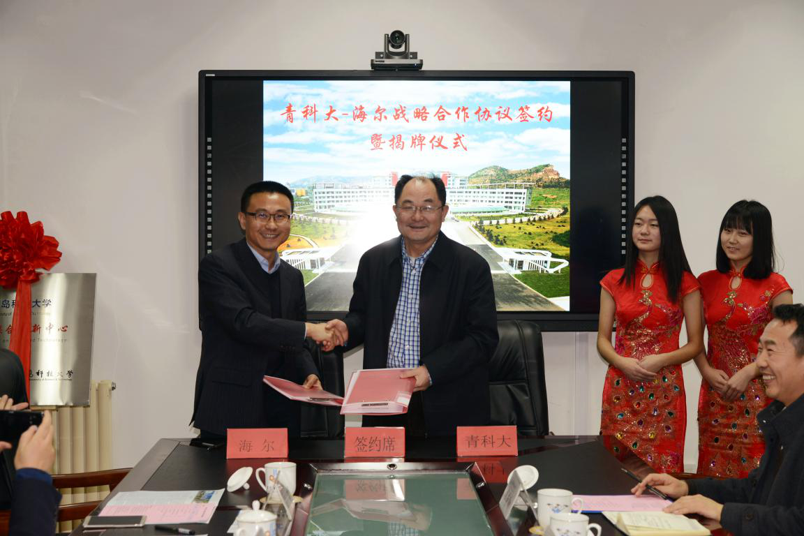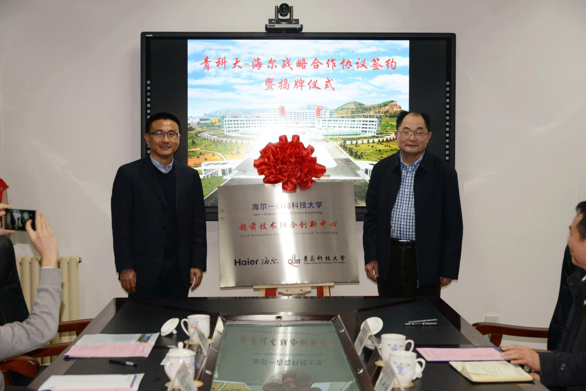 12月27日下午,青岛科技大学与海尔集团战略合作协议签约暨联合实验室揭牌仪式在图书馆楼5004室举行。青岛科技大学副校长刘光烨、海尔副总裁王晔、校合作发展处处长李少香、开云官网院长何燕、海尔超前创新中心总监马国军、材料学部及开云官网等相关老师出席会议。
