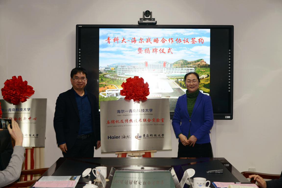 会上,刘光烨与王晔进行现场签约并为海尔-青岛科技大学“超前技术联合创新中心”揭牌,何燕与马国军为“压缩机及传热技术联合实验室”揭牌。