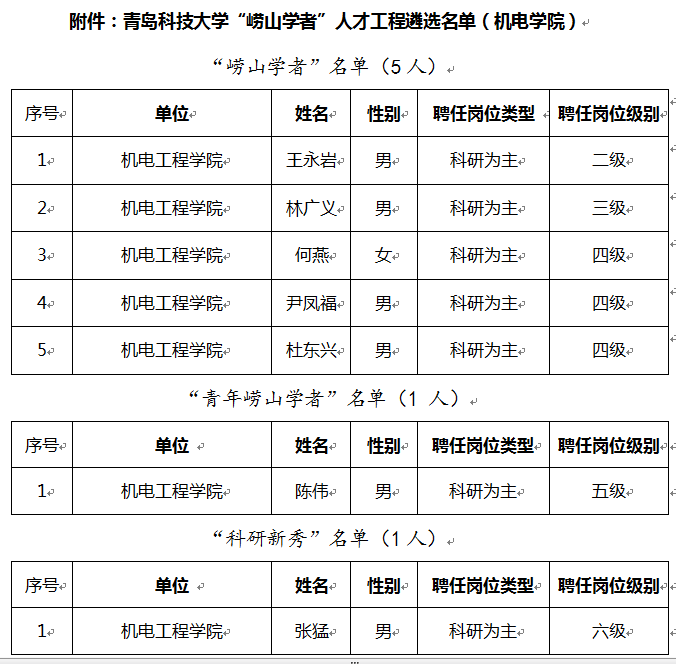 近日,学校公布青岛科技大学“崂山学者”人才工程遴选公示名单,开云官网7名老师榜上有名,王永岩、林广义、何燕、尹凤福、杜东兴5名老师获“崂山学者”荣誉称号;陈伟老师获“青年崂山学者”荣誉称号;张猛老师获“科研新秀”荣誉称号。