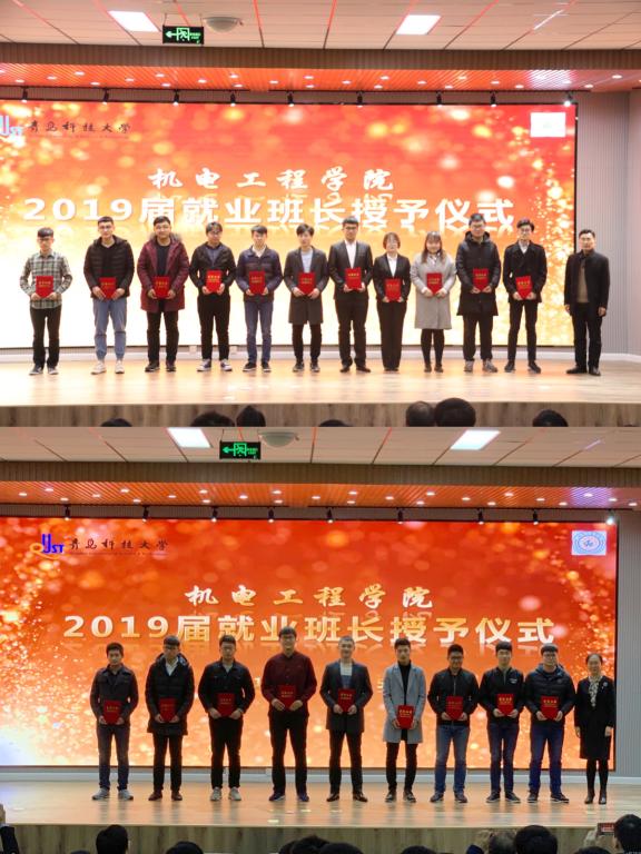 肖强、何燕先后为开云官网2019届就业班长颁发聘书。