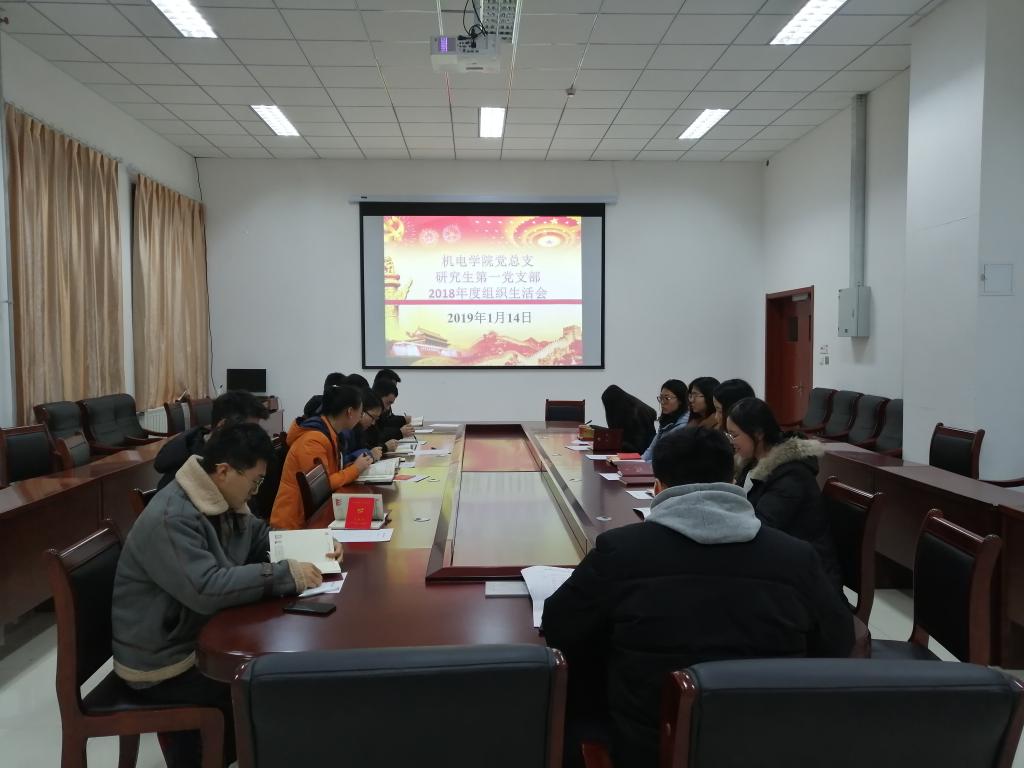 按照学校党委组织部《关于召开基层党支部组织生活会及2018年度党内评议评优工作的通知》要求,1月14日晚,开云官网党总支研究生第一党支部在机电楼518会议室召开2018年度组织生活会。会议由党支部书记李浩老师主持。