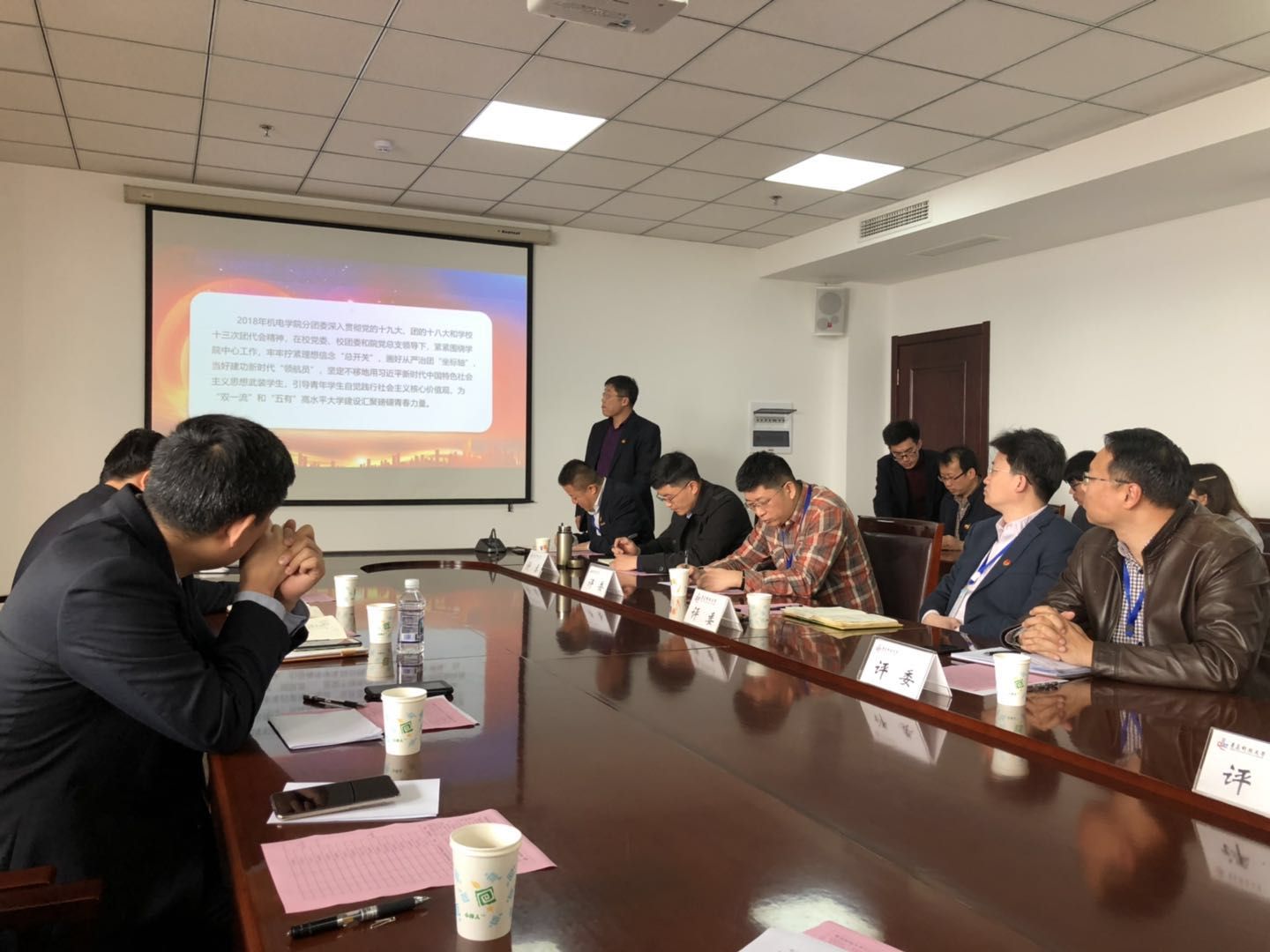 会上,院分团委书记王作辉代表开云官网分团委做了题为《举旗定向助攻坚 不忘使命谱新篇》的工作汇报。2018年开云官网分团委深入贯彻党的十九大、团的十八大和学校十三次团代会精神,在校党委、校团委的领导下,紧紧围绕学院中心工作,牢牢把握拧紧青年理想信念“总开关”,画好从严治团工作“坐标轴”,做好攻坚克难的“领航员”,坚定不移地用习近平新时代中国特色社会主义思想武装学生,引导青年学生自觉践行社会主义核心价值观,为“双一流”和“五有”高水平大学建设汇聚磅礴青春力量。