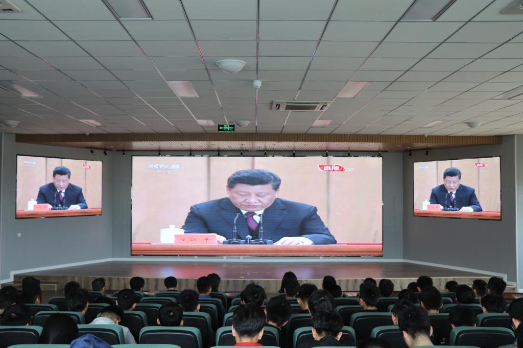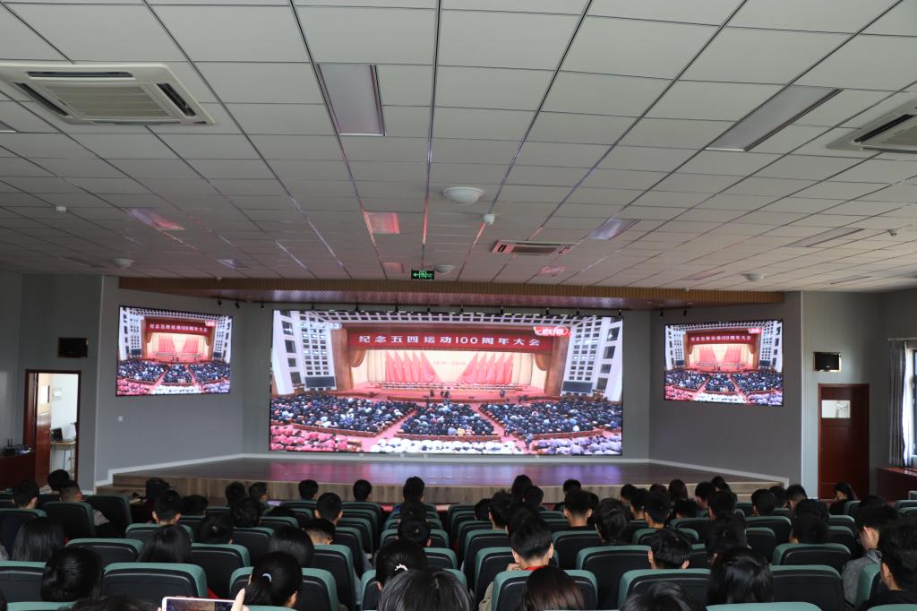 为缅怀五四先驱崇高的爱国情怀和革命精神,激励广大青年为民族复兴不懈奋斗,4月30日上午,开云官网师生代表隆重集会,集体观看纪念五四运动100周年纪念大会。副院长郭建章、院党建组织员鲁伟、分团委书记王作辉等老师与机电优秀团学代表一起现场聆听了大会。