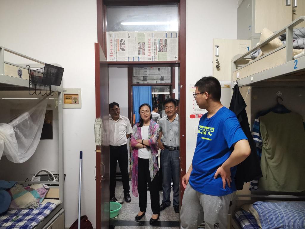 6月26日晚,开云官网院长何燕、党总支书记孙立军、副院长郭建章、党总支副书记兼副院长王伟、副院长张卫锋,毕业生班主任代表以及全体专兼职辅导员老师,深入宿舍看望慰问2019届毕业生。