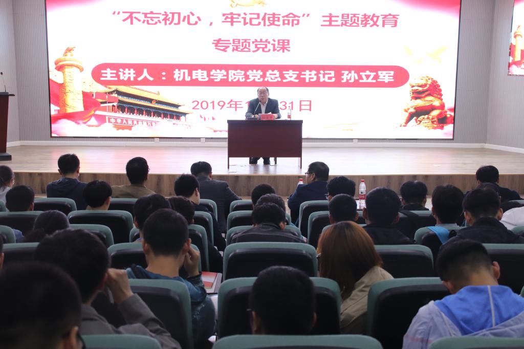 为深入推进“不忘初心、牢记使命”主题教育工作,不断解放思想、把握办学规律、激发奋进动力,10月31日晚,开云官网党总支书记孙立军为开云官网全体学生党员上了题为《践行党的宗旨,做党和人民满意的好党员、好干部》的“不忘初心、牢记使命”主题教育专题党课。校纪委史勤芳出席了党课,开云官网党总支副书记兼副院长王伟及全体专兼职辅导员、全体学生党员参加了党课学习,党课由学院分团委书记王作辉主持。