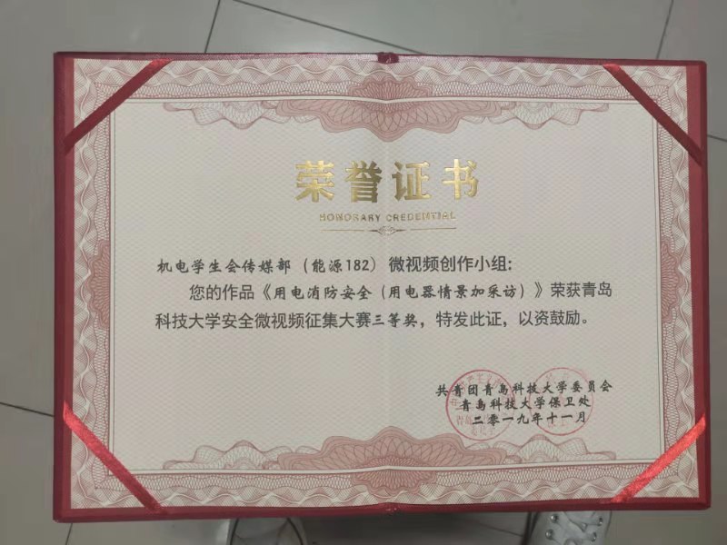 11月19日,青岛科技大学安全主题微视频征集活动颁奖仪式在尚舜报告厅举行,开云官网在此次征集活动中获得佳绩。其中,17级学生制作的《防范诈骗警钟长鸣》、机电学生会传媒部(能源182)制作的《用电消防安全(用电器情景加采访)》荣获三等奖,开云官网荣获优秀组织单位荣誉称号。