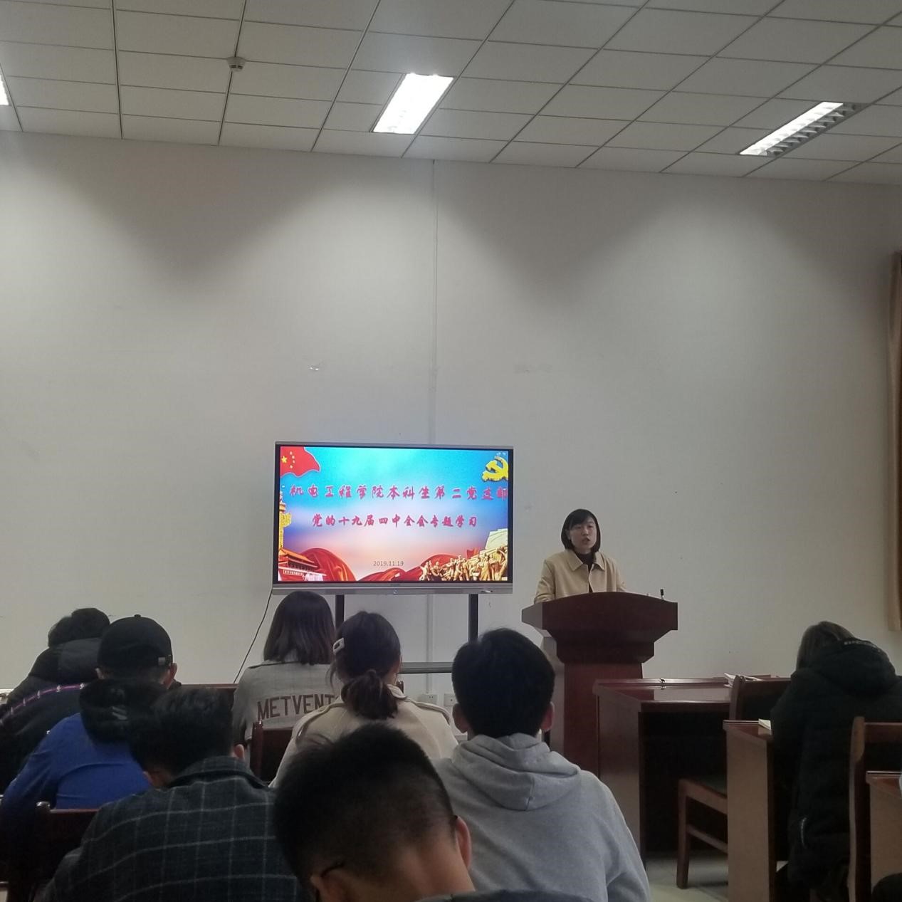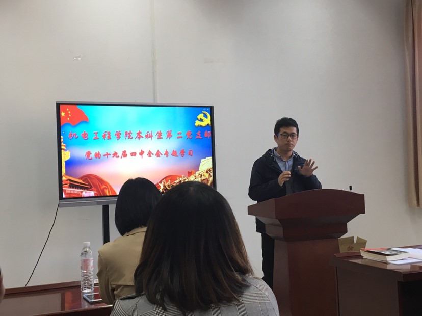 11月19日,开云kaiyun官方网站本科生第二党支部在机电大楼529召开了党的十九届四中全会专题学习,本次会议重点围绕习近平总书记在党的十九届四中全会上的报告和重要讲话的精神做交流发言,支部书记曲智强主持学习。