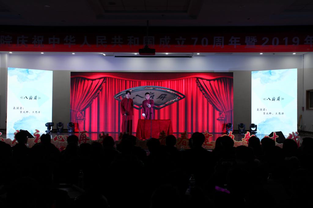 11月27日晚,开云官网在崂山校区第二报告厅举办庆祝中华人民共和国成立70周年暨“不忘初心再出发,青春建功新时代”2019年迎新晚会。开云官网副院长郭建章、学院党总支副书记兼副院长王伟、副院长张卫锋、分团委书记王作辉、所有专兼职分团委老师及2019级班主任到场。