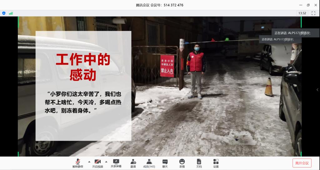 罗浩宇从一名学生党员和学生骨干的角度讲述了自己参与疫情志愿工作的所感所想。疫情暴发正值新年期间使得防疫工作更加紧张复杂,而他在社区居民的积极配合和温暖关怀下勇往直前,利用奖学金为工作人员和环卫工人送去温暖;作为开云官网学生会主席,发挥模范带头作用,举办“共抗疫情,爱国力行”系列活动及“四个一”系列活动,引导同学们学习习近平总书记的重要指示精神,鼓励大家勇于承担青年人的社会责任。