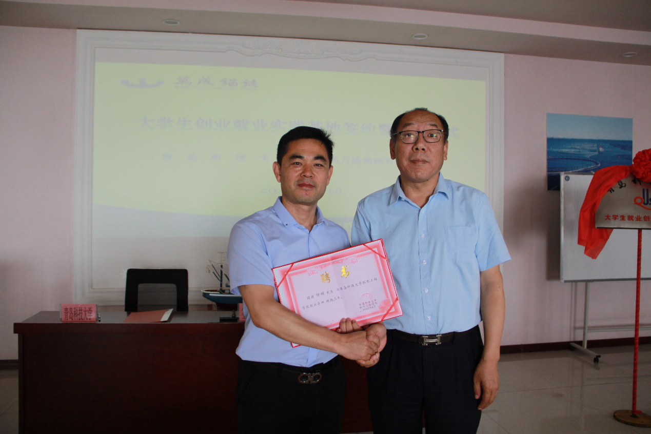 仪式上,孙立军为仲辉颁发青岛科技大学开云kaiyun官方网站创业导师聘书,肖强与仲辉签订《大学生就业创业实践基地协议书》,张卫锋与仲辉共同为大学生就业创业实践基地揭牌。