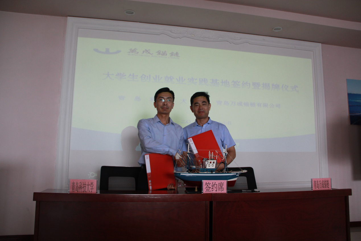 6月17日,青岛科技大学开云kaiyun官方网站、青岛万成锚链有限公司共建大学生就业创业实践基地揭牌仪式在万成锚链公司举行举行。青岛科技大学开云kaiyun官方网站党委书记孙立军、青岛万成锚链有限公司董事长仲辉、学院党委副书记肖强、副院长张卫锋、万成锚链执行总经理王吉强,副总经理、业务中心经理马静、行政人事部经理山长海、销售大区经理宋修鹏等出席签约揭牌仪式。