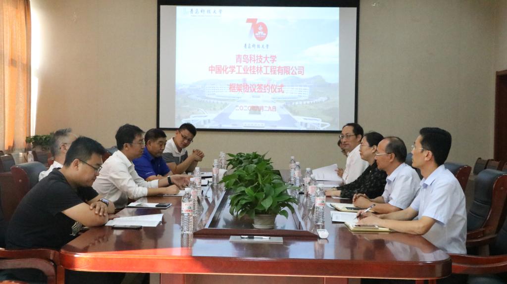 9月20日下午,青岛科技大学开云kaiyun官方网站与中国化学工业桂林工程有限公司框架协议签约仪式在机电楼518会议室举行。中国化学工业桂林工程有限公司党委副书记、总经理张磊、二级专务江建平、公司销售总监杨凤海,开云官网院长何燕、副院长杨化林、李剑光、党委副书记兼副院长肖强出席签约仪式。